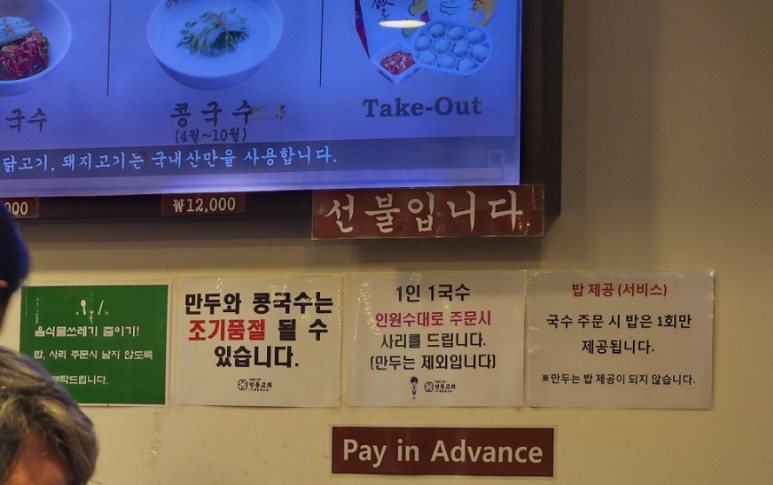 워낙에나 손님도 많고 회전율이 빠르기 때문에 선불로 결제를 하는데