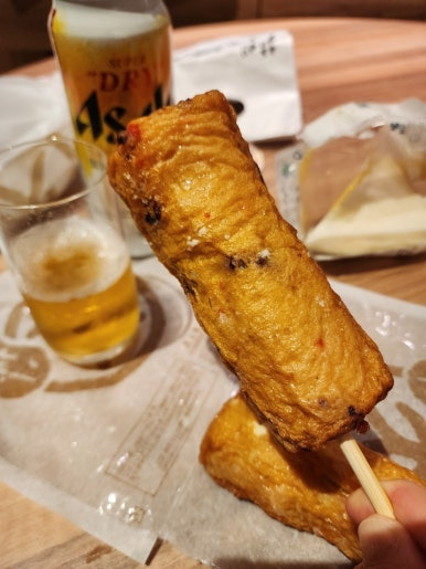 굿즈 쇼핑까지 마치고 시원한 맥주와 핫바(이것도 아타미에서 유명하다고 해서 샀어요)를