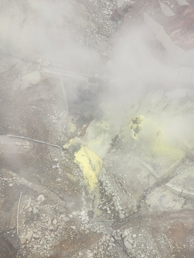 유황계곡에서 뿜어져 나오는 연기와 절경을 로프웨이를 타고 가면서 보는 맛으로