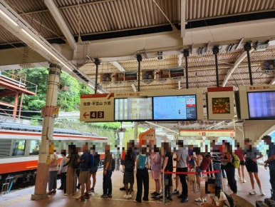 하코네 정상까지 가는 길은 열차를 3번 갈아타야 했어요.