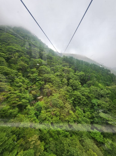 열차를 갈아타고 로프웨이를 타고 올라간건데...