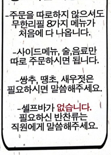 그래도 무한으로 리필이 가능하니 맛잇게 드시고 한번 더 요청해 주세요 :)