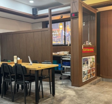 깔끔하고 넓은 실내는 단체로 식사를 하기에도 좋고 테이블간 동선도 넓어서
