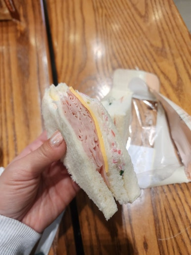 이른 시간이었기에 가볍게 샌드위치랑 에너지 드링크 하나 먹어줬어요.