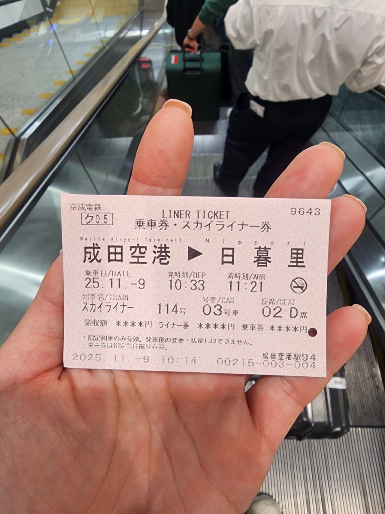 나리타 공항에서 닛포리로 탈 스카이라이터는 한국에서 미리 예약을 했고
