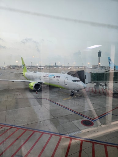 비행기는 진에어. 가는날은 오전 7시 35분 비행기에 오는날은 저녁 7시 비행기로