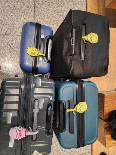 아무래도 비슷한 가방이 많으니 이렇게 러기지택 달아두면 찾기 편한것 같아요.