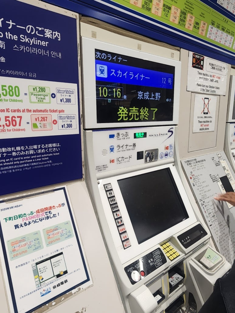 공항에서 나오자 마자 왼쪽에 스카이라이너 티켓 부스가 있는데 자동발권기에서