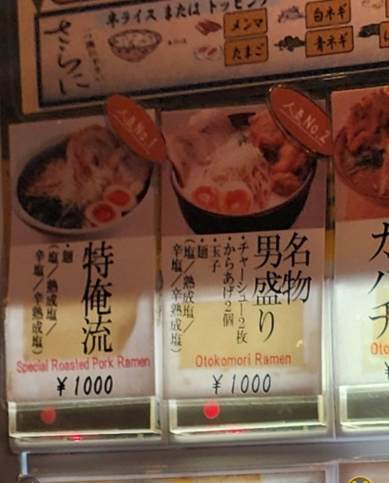 돼지고기 차슈가 들어간 라멘과 가라아게가 함께 들어간 라멘으로 선택!