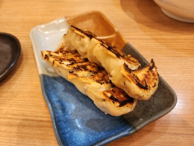 라멘을 먹는 중간에 사이드로 주문한 교자만두도 나왔습니다.